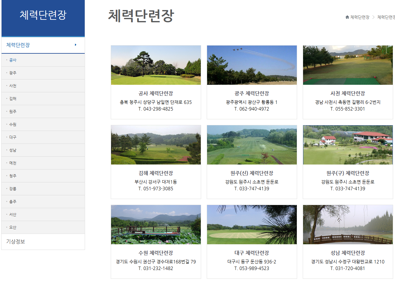 지역별 공군체력단련장(골프장) 이용하여 예약, 이용요금, 각종 시설 이용방법 및 오시는길 아래에서 확인하실수있습니다.