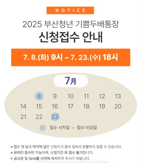 〈2025년 부산청년 기쁨두배통장 참가자 모집 공고〉
