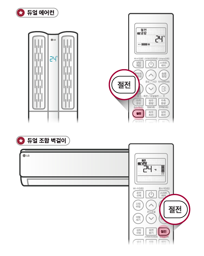 - 듀얼 에어컨의 경우 독립 절전 기능을 활용할 수 있습니다.