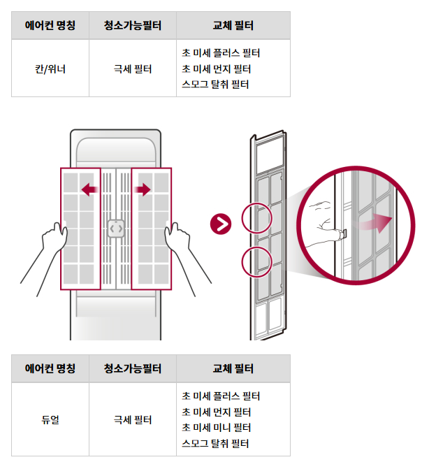 📋 LG 에어컨 모델별 필터 종류